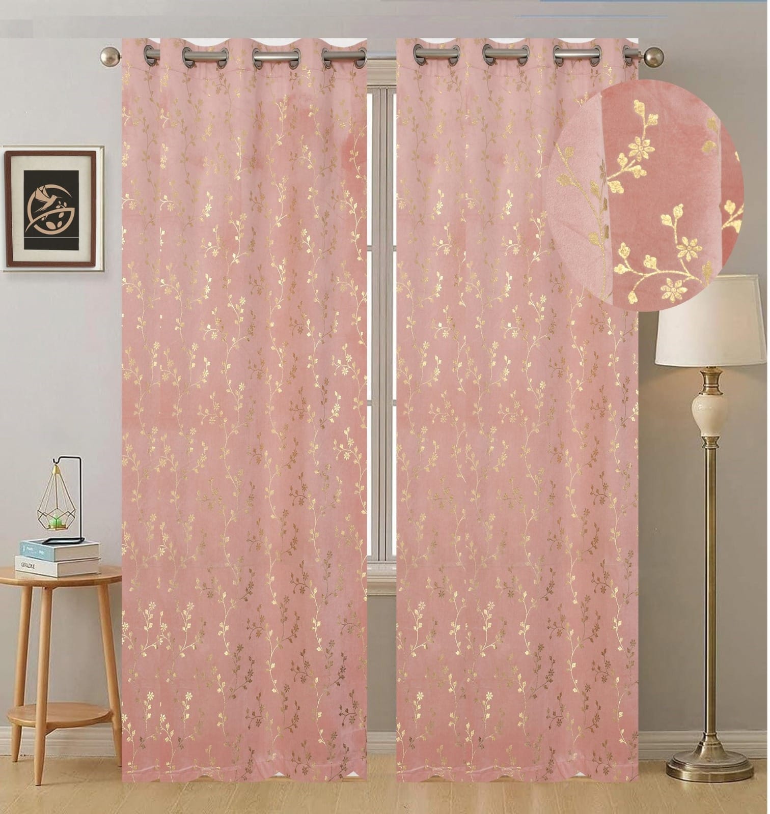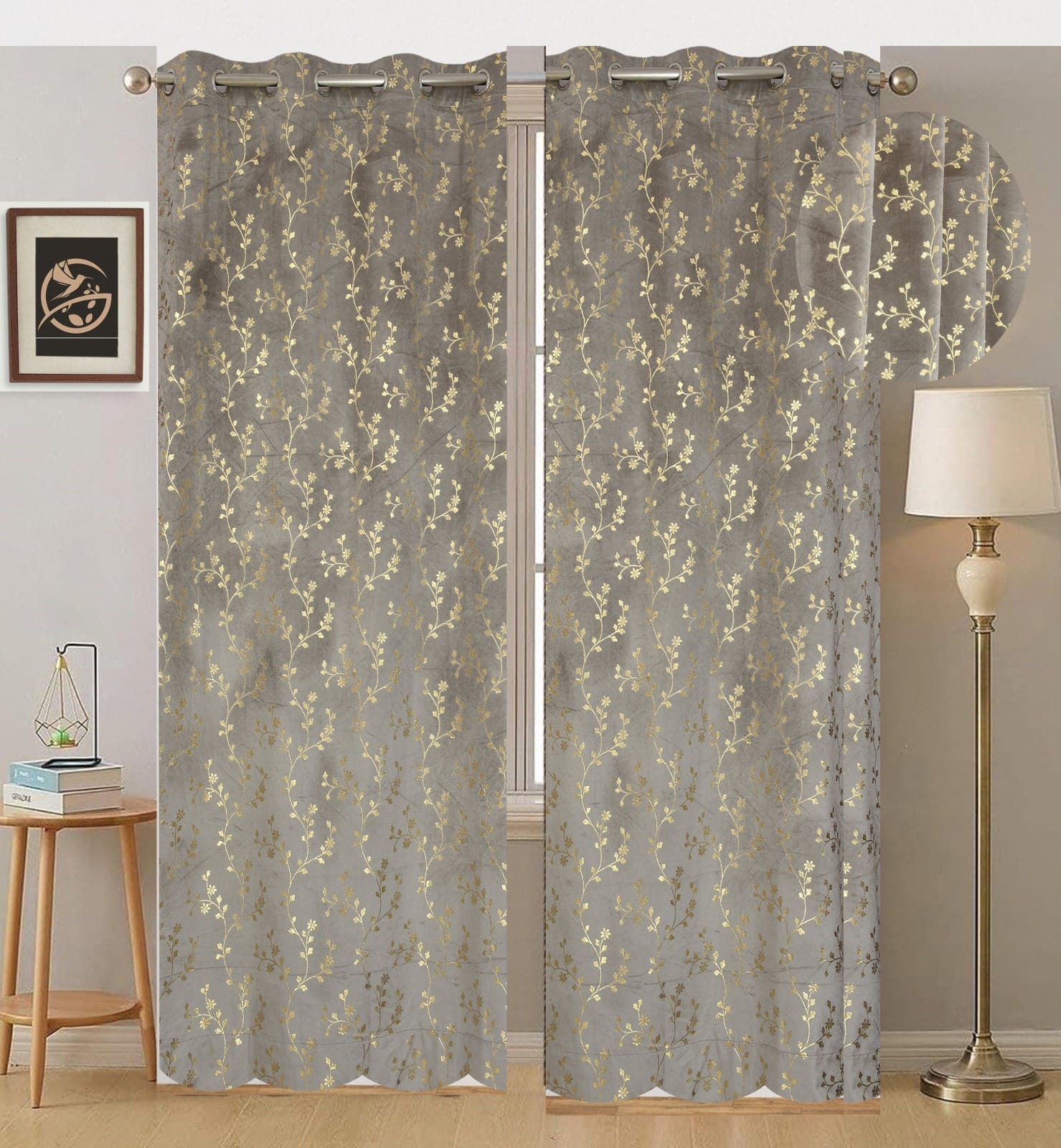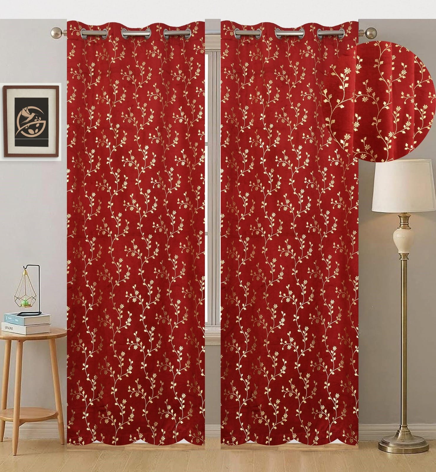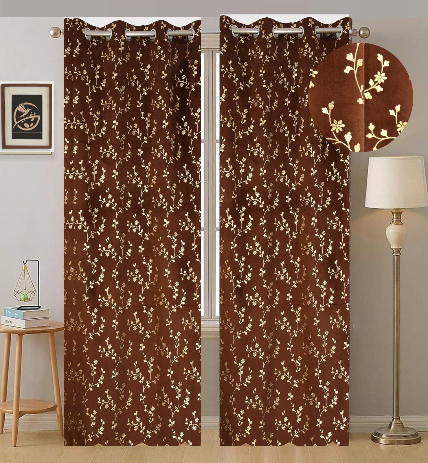 Enhance your home décor with this Set of Premium Eyelet Curtains crafted in a soft velvety fabric with an elegant embossed floral pattern. These curtains bring a luxurious touch to any space while ensuring privacy and style. The rich texture and modern design make them perfect for living rooms, bedrooms, or office spaces. Equipped with durable stainless steel eyelets, they are easy to hang and glide smoothly on any standard curtain rod.