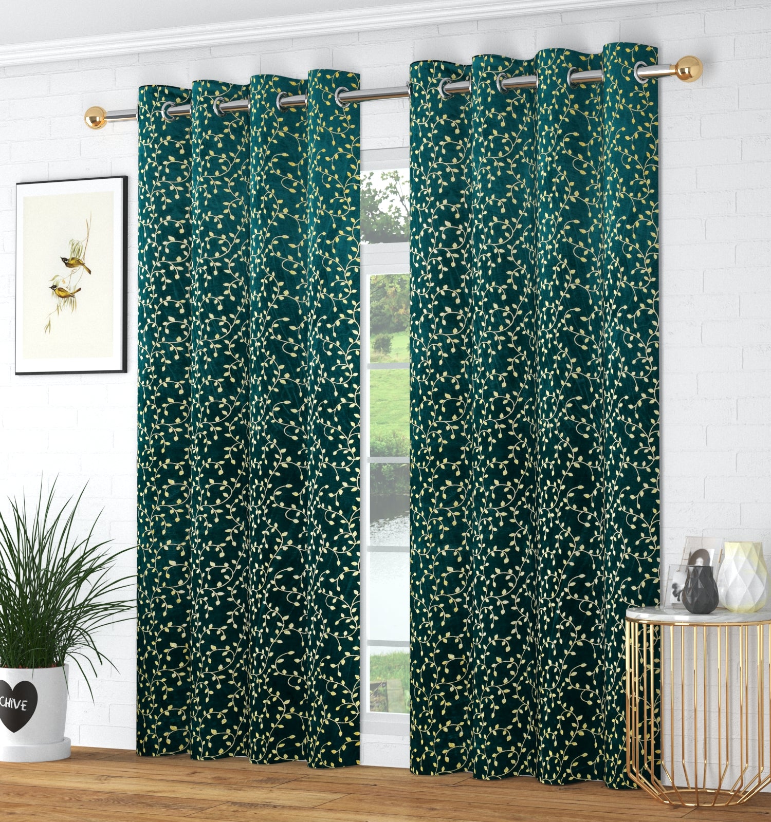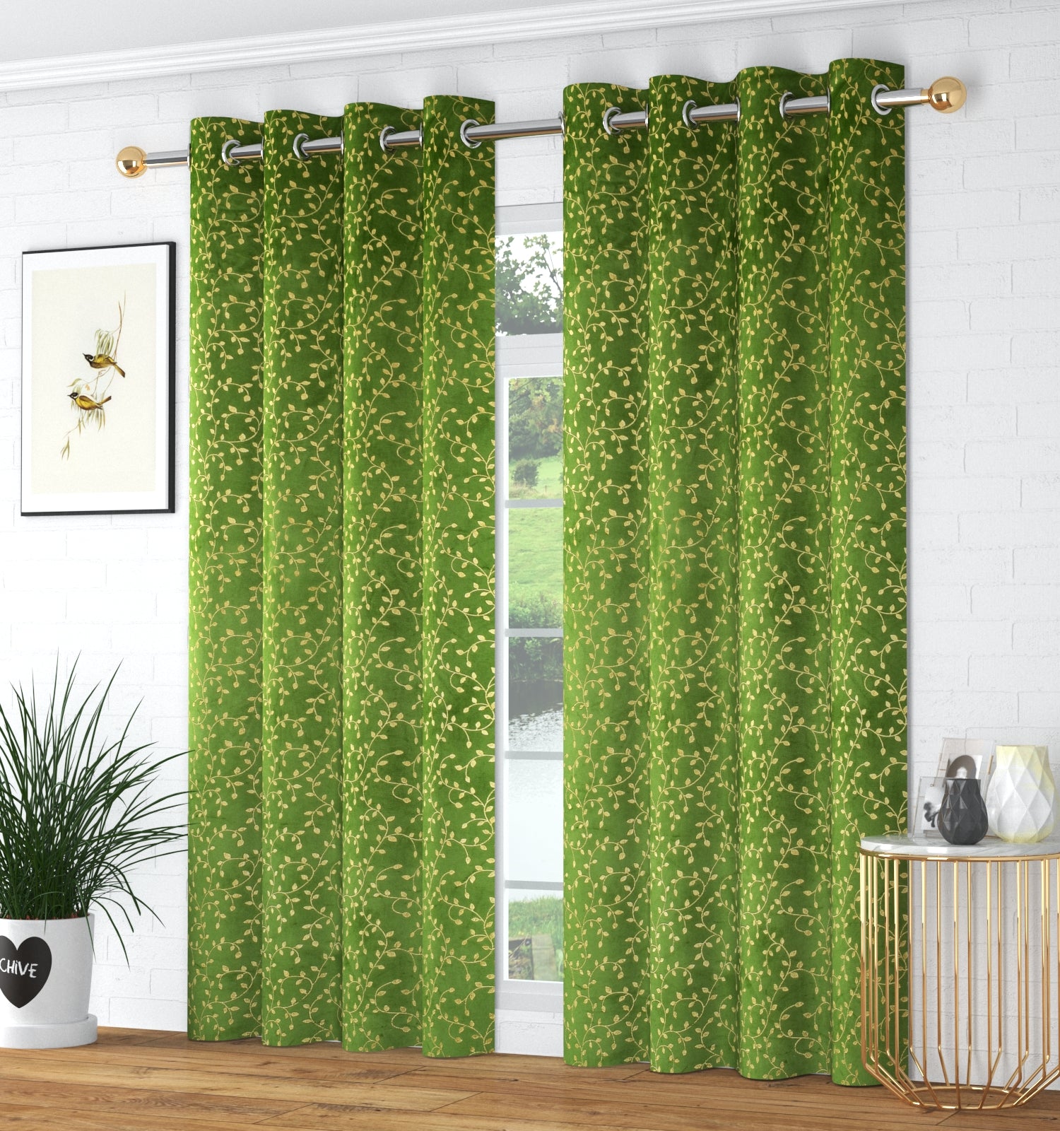 Enhance your home décor with this Set of Premium Eyelet Curtains crafted in a soft velvety fabric with an elegant embossed floral pattern. These curtains bring a luxurious touch to any space while ensuring privacy and style. The rich texture and modern design make them perfect for living rooms, bedrooms, or office spaces. Equipped with durable stainless steel eyelets, they are easy to hang and glide smoothly on any standard curtain rod.