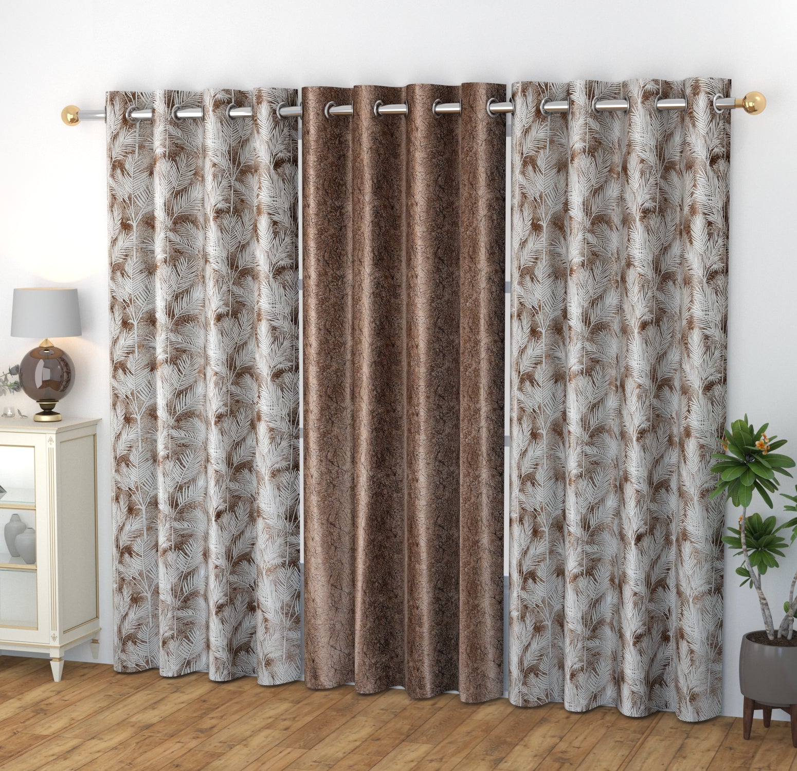 Enhance your home décor with this Set of 3 Premium Eyelet Curtains crafted in a soft fabric with an elegant embossed floral pattern. These curtains bring a luxurious touch to any space while ensuring privacy and style. The rich texture and modern design make them perfect for living rooms, bedrooms, or office spaces. Equipped with durable stainless steel eyelets, they are easy to hang and glide smoothly on any standard curtain rod.