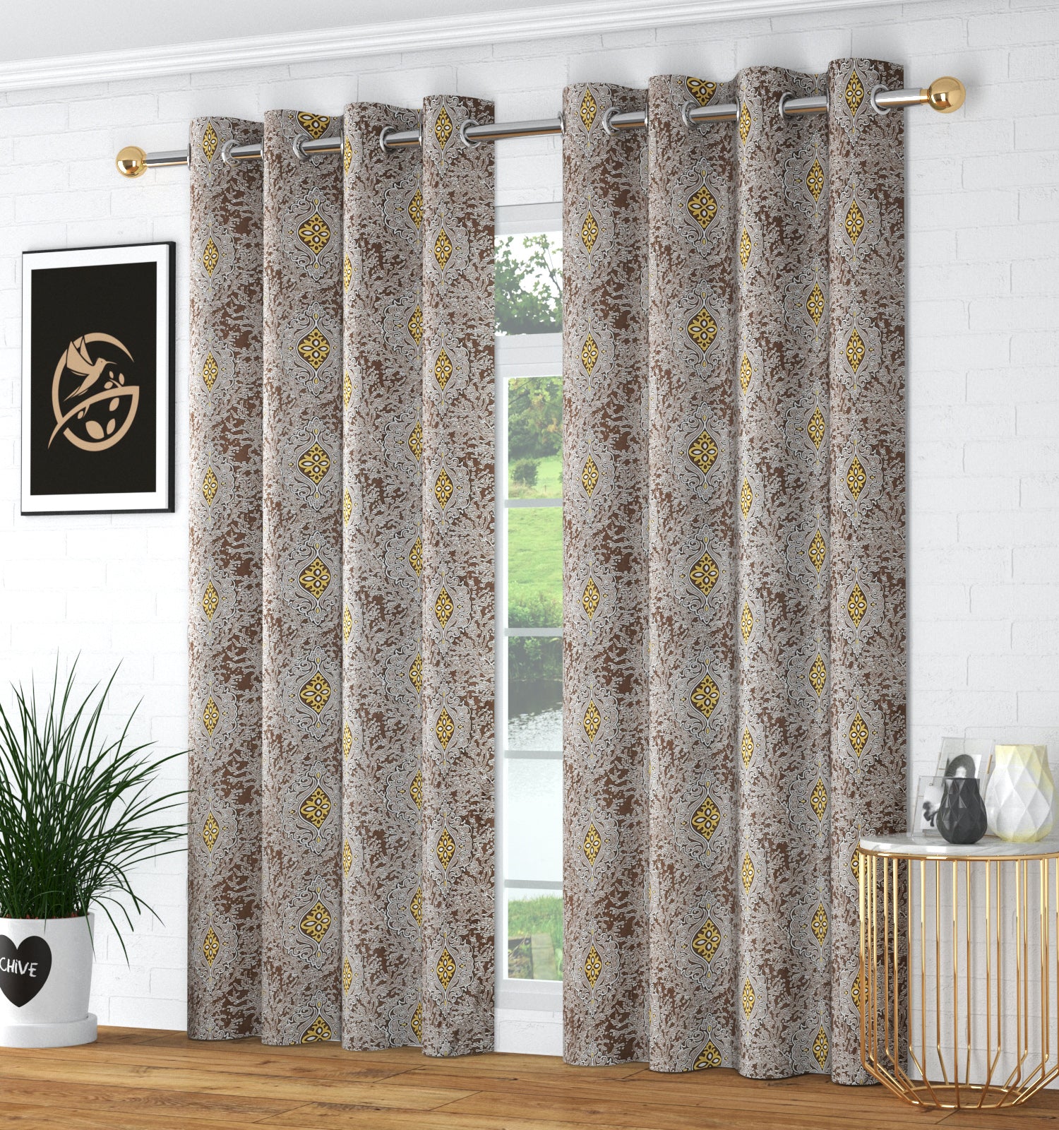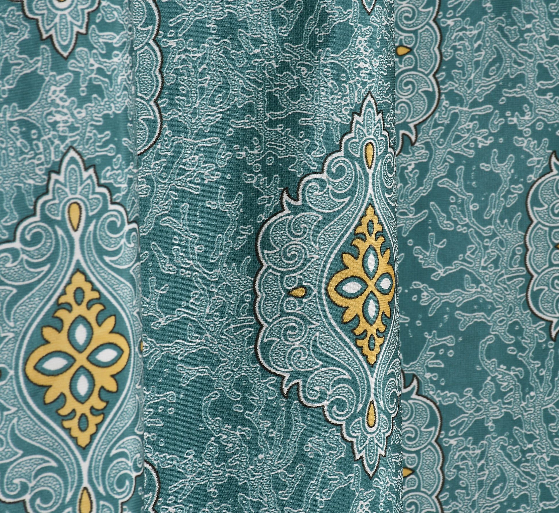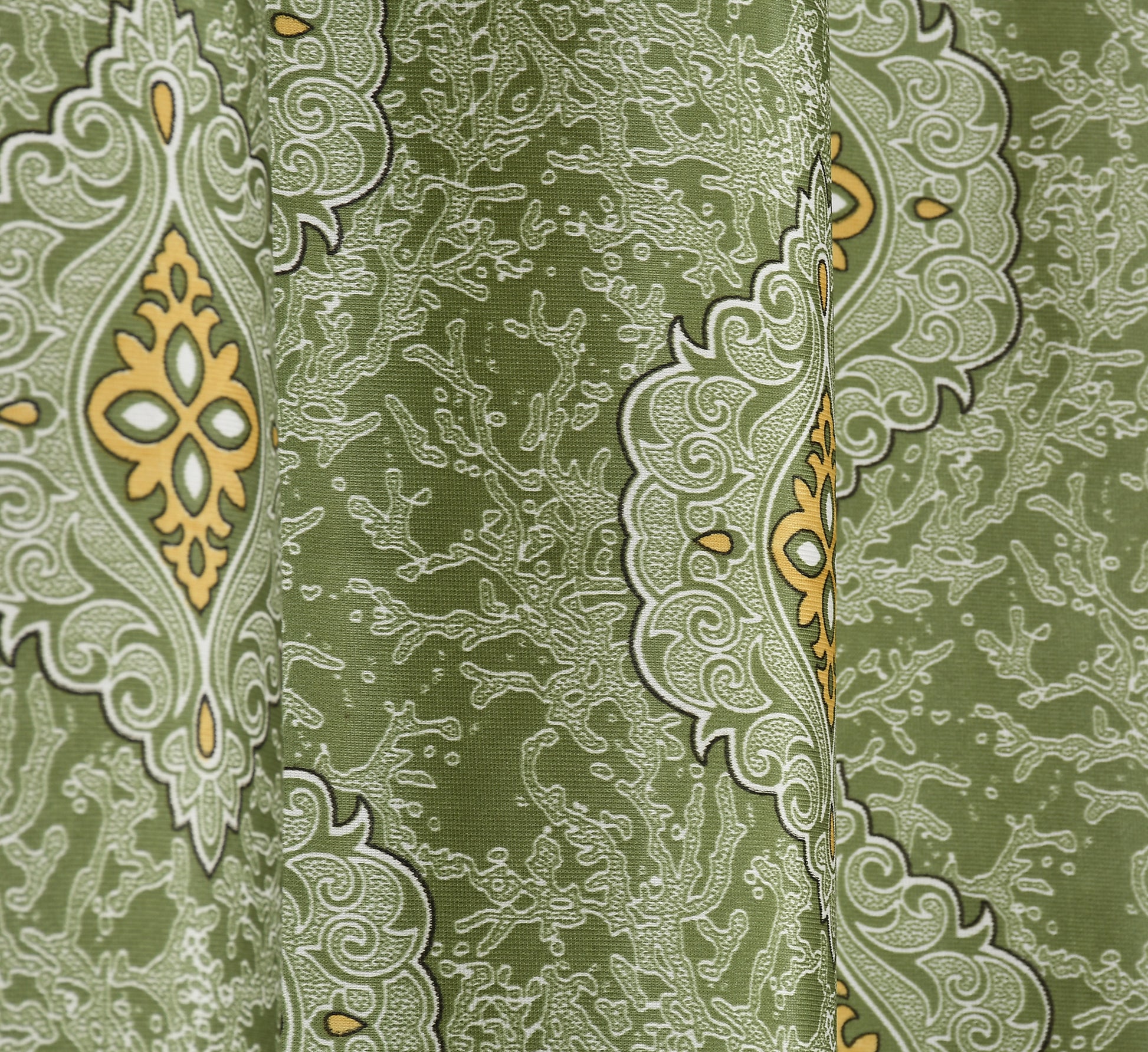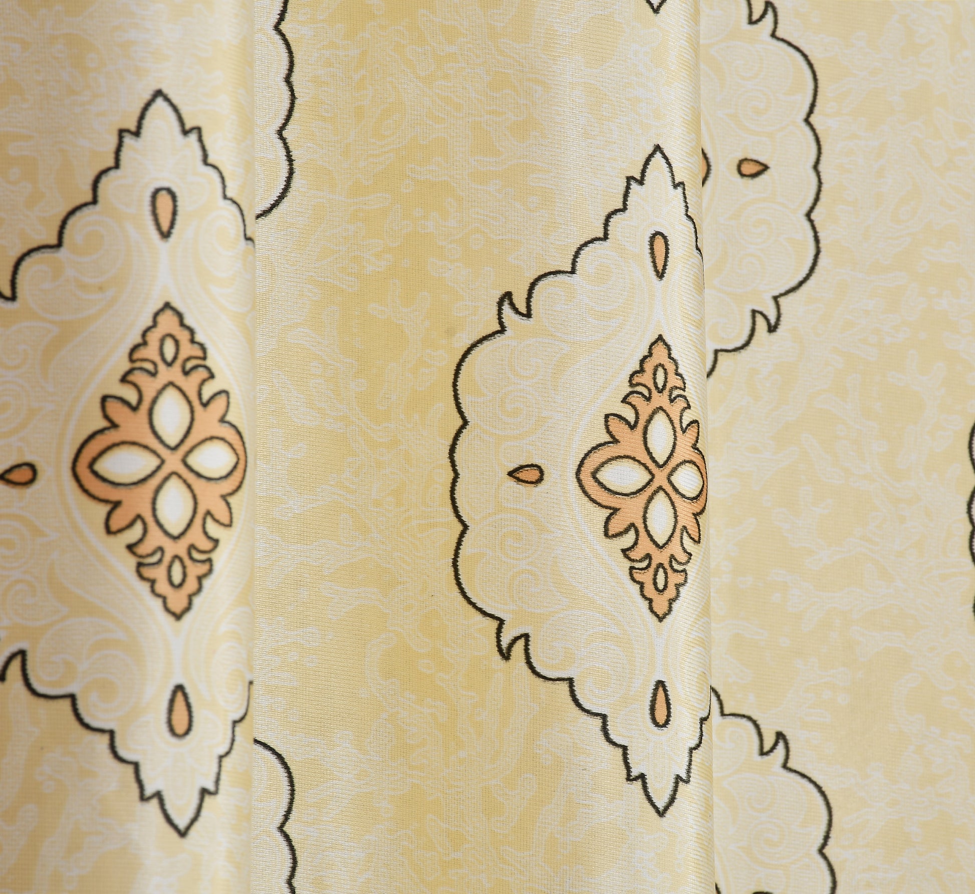 Add elegance to your space with these curtains, featuring a sophisticated ethnic pattern in yellow and white.