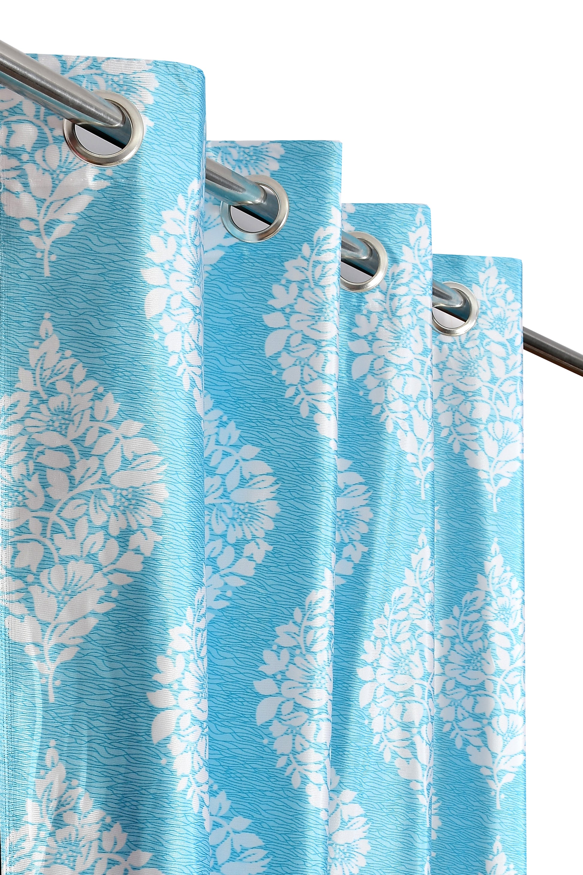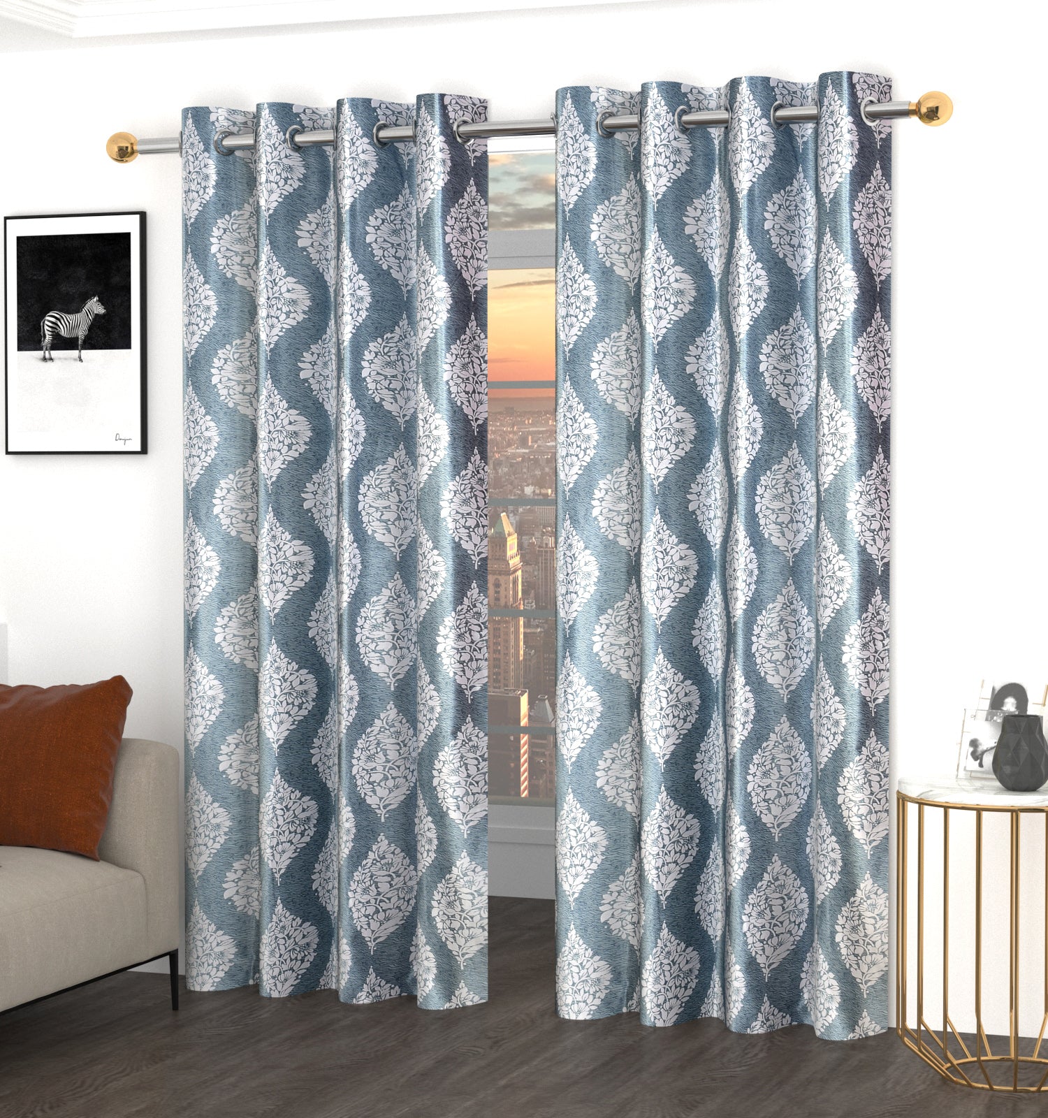 Add a refreshing touch to your interiors with these elegant aqua curtains, featuring a floral damask pattern in crisp white against a textured aqua background. Made from high-quality fabric for a soft, luxurious feel, these curtains come with sturdy metal eyelets for easy hanging and smooth movement. Available in six beautiful colors: aqua, coffee, gold, green, grey, and pink.