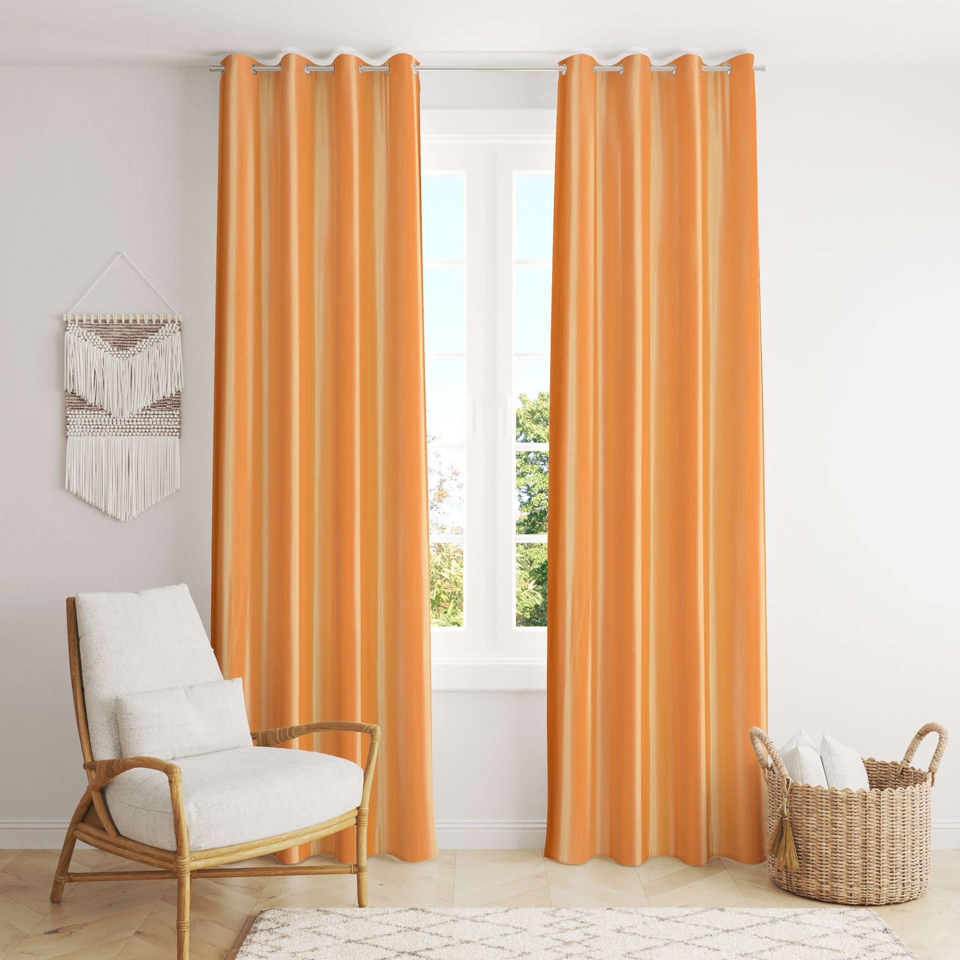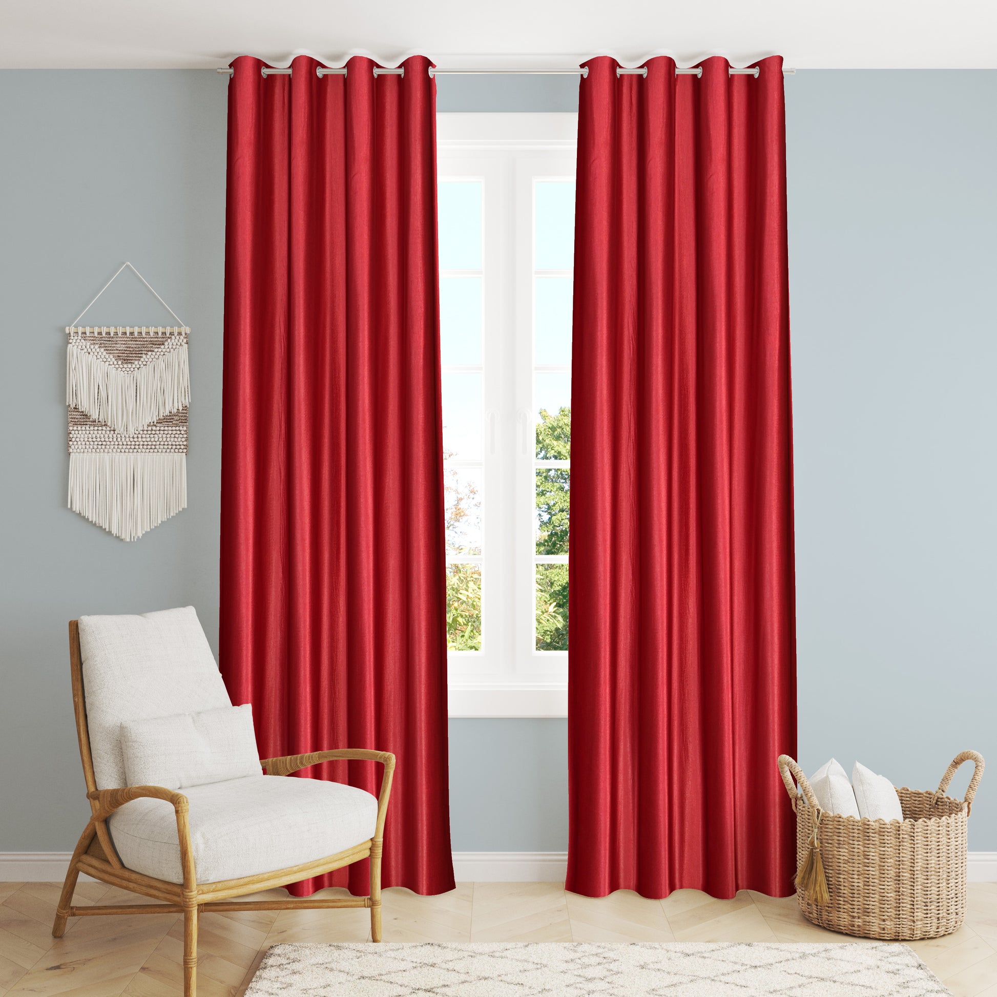 Enhance your home décor with this Set of Premium Eyelet Curtains crafted in a soft long crush fabric with an elegant embossed floral pattern. These curtains bring a luxurious touch to any space while ensuring privacy and style. The rich texture and modern design make them perfect for living rooms, bedrooms, or office spaces. Equipped with durable stainless steel eyelets, they are easy to hang and glide smoothly on any standard curtain rod.