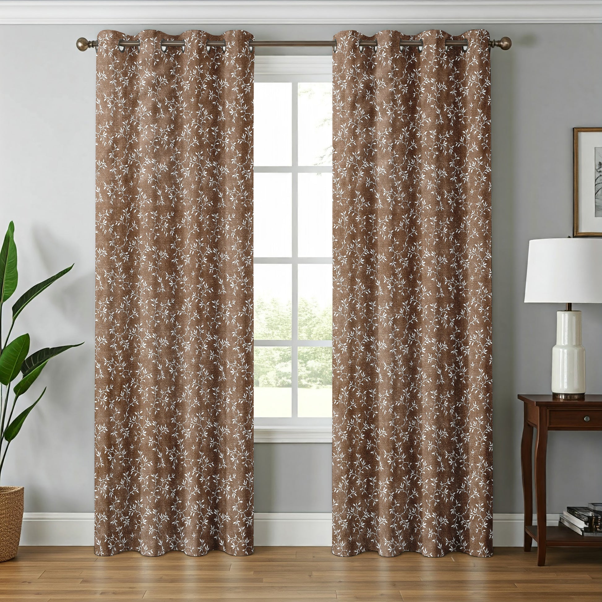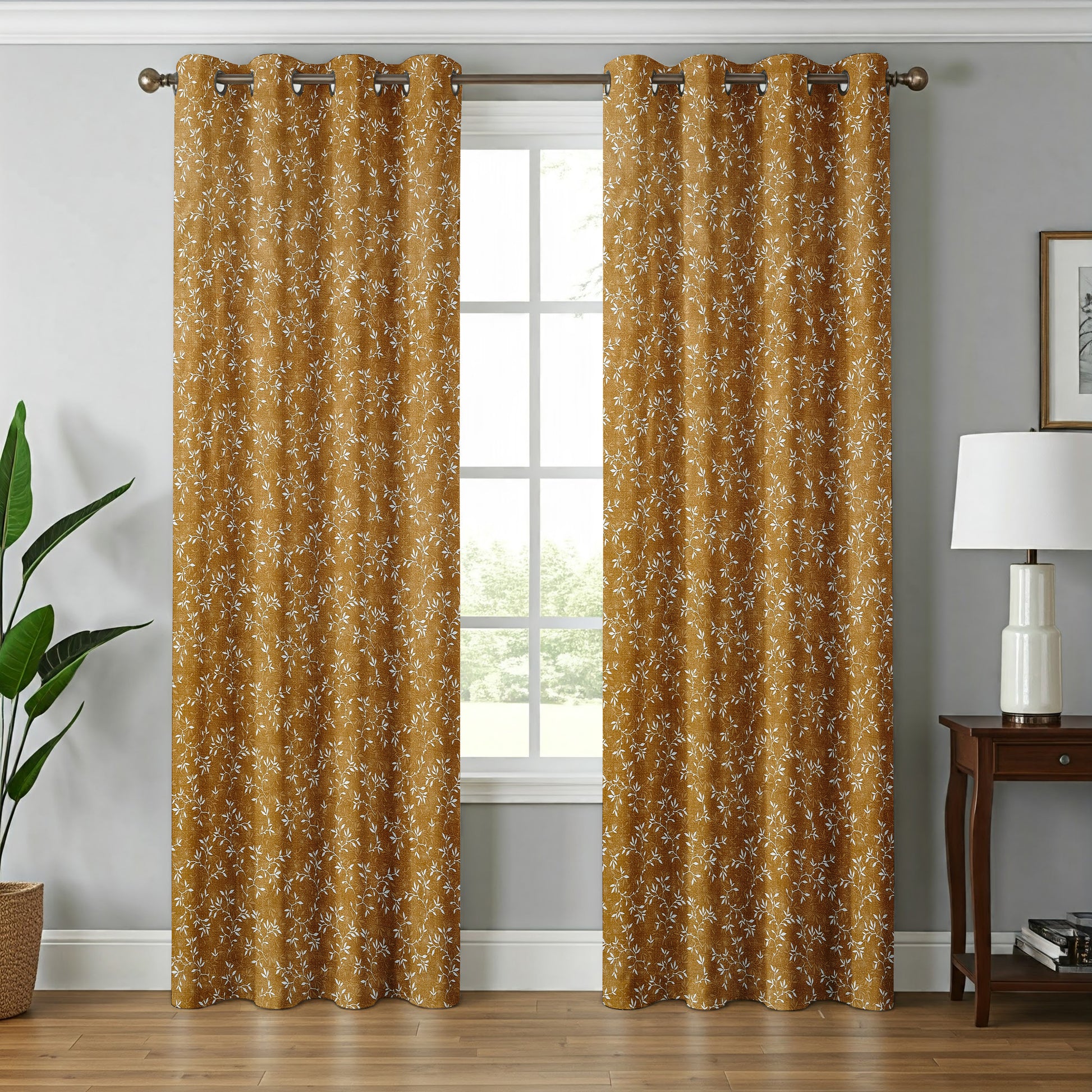 Enhance your interiors with these elegant curtains, featuring a rich grey background adorned with a delicate white leafy vine pattern. Made from premium quality fabric, these curtains offer a sophisticated look and are fitted with durable metal eyelets for easy installation and smooth operation. Available in six beautiful colors: green, grey, gold, coffee, pink, and blue.