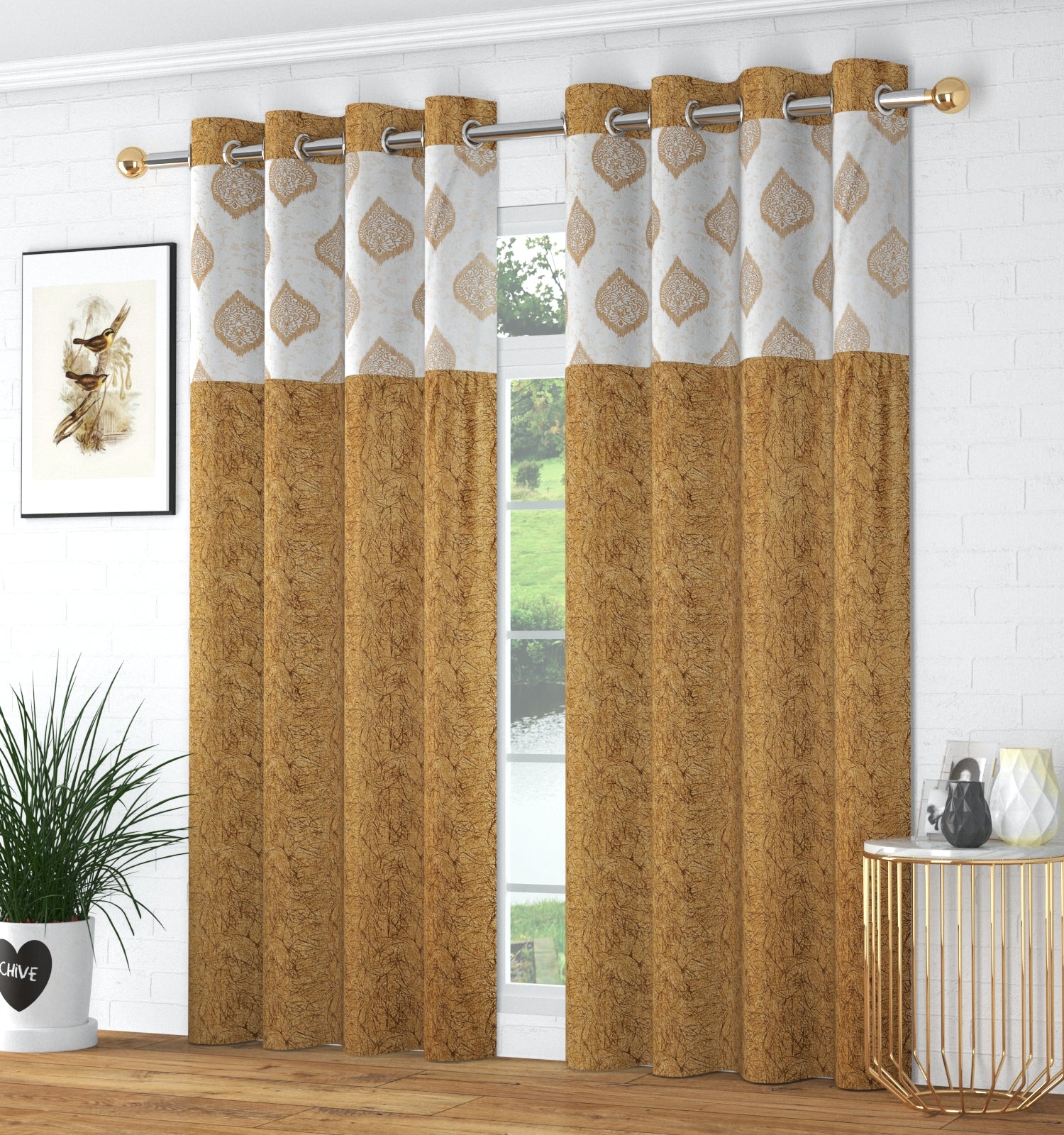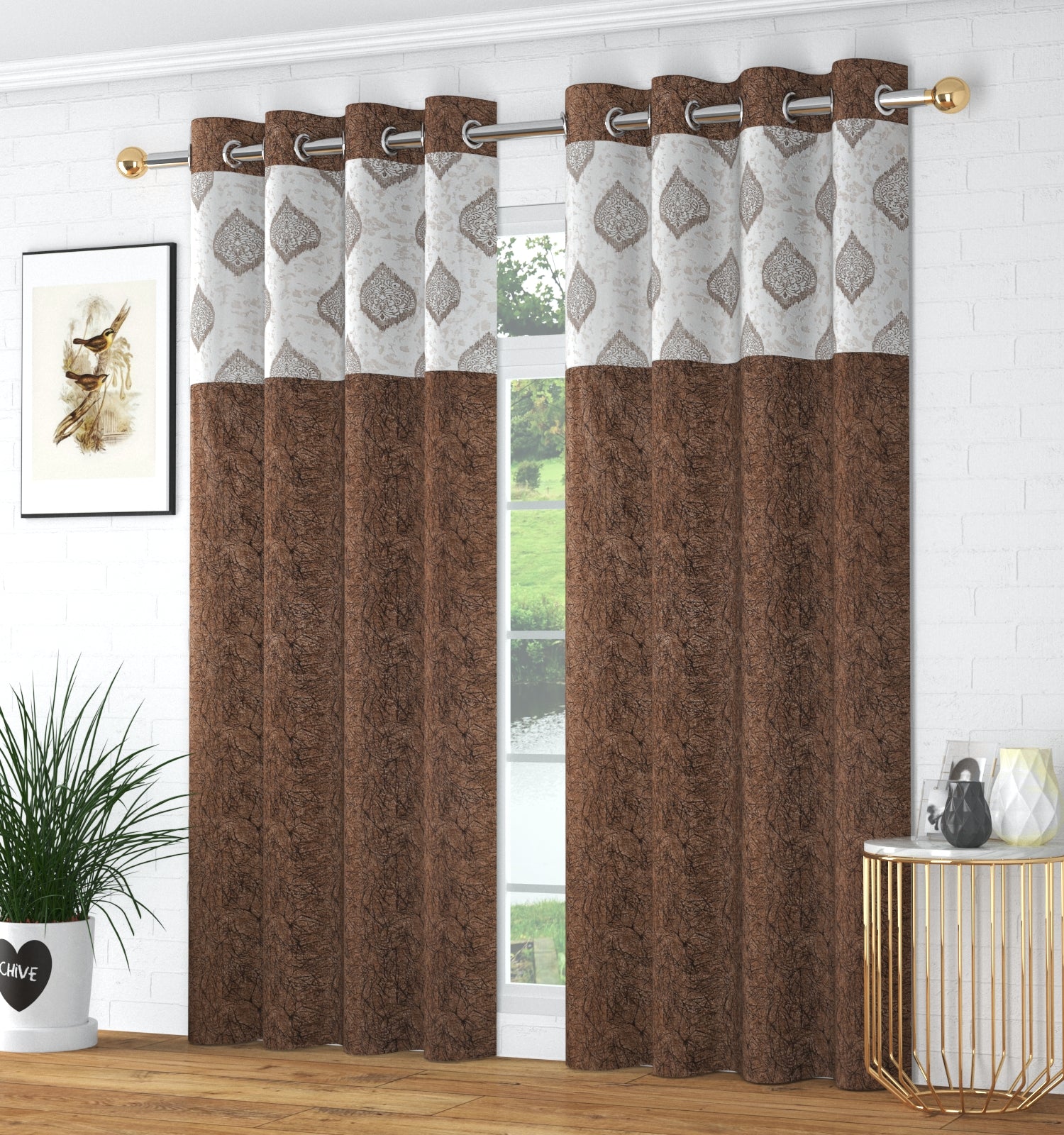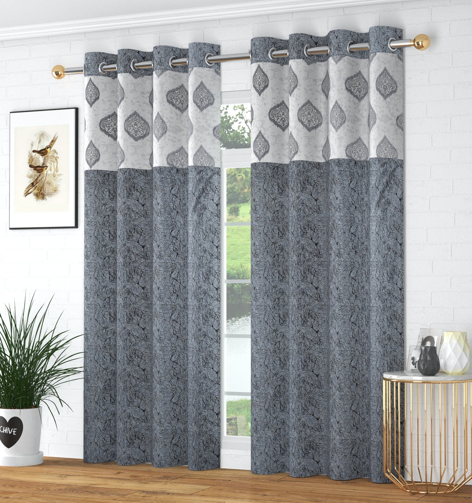 Enhance your home décor with this Set Of Premium Eyelet Curtains crafted in a soft fabric with an elegant embossed floral pattern. These curtains bring a luxurious touch to any space while ensuring privacy and style. The rich texture and modern design make them perfect for living rooms, bedrooms, or office spaces. Equipped with durable stainless steel eyelets, they are easy to hang and glide smoothly on any standard curtain rod.