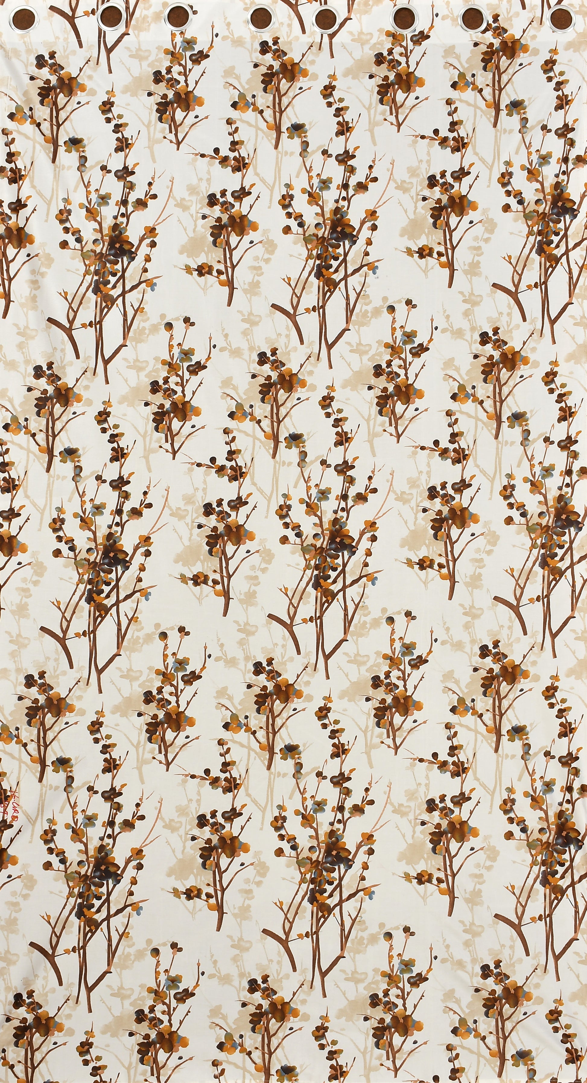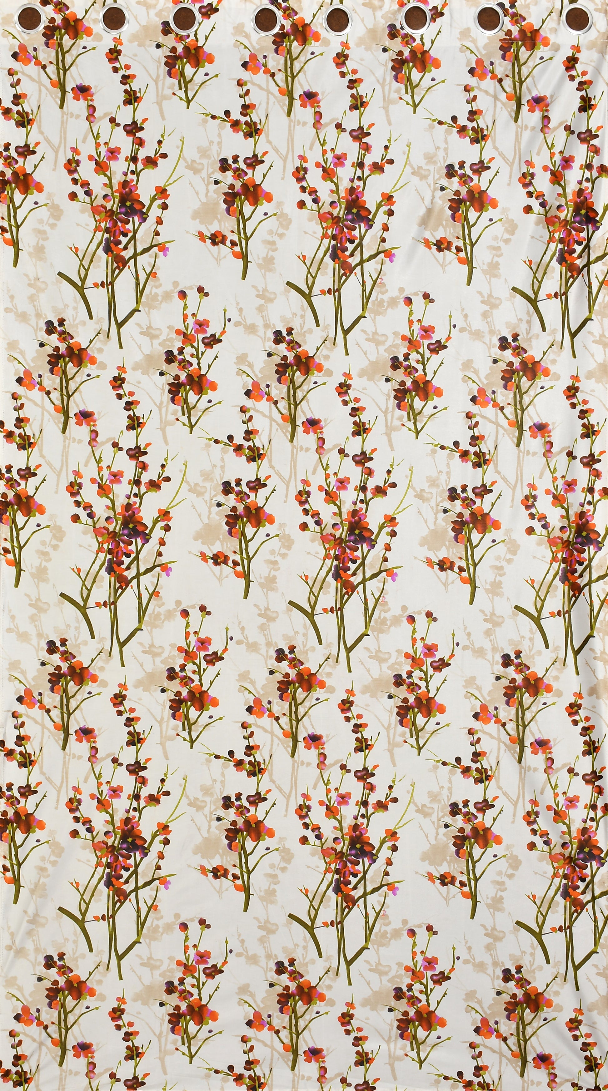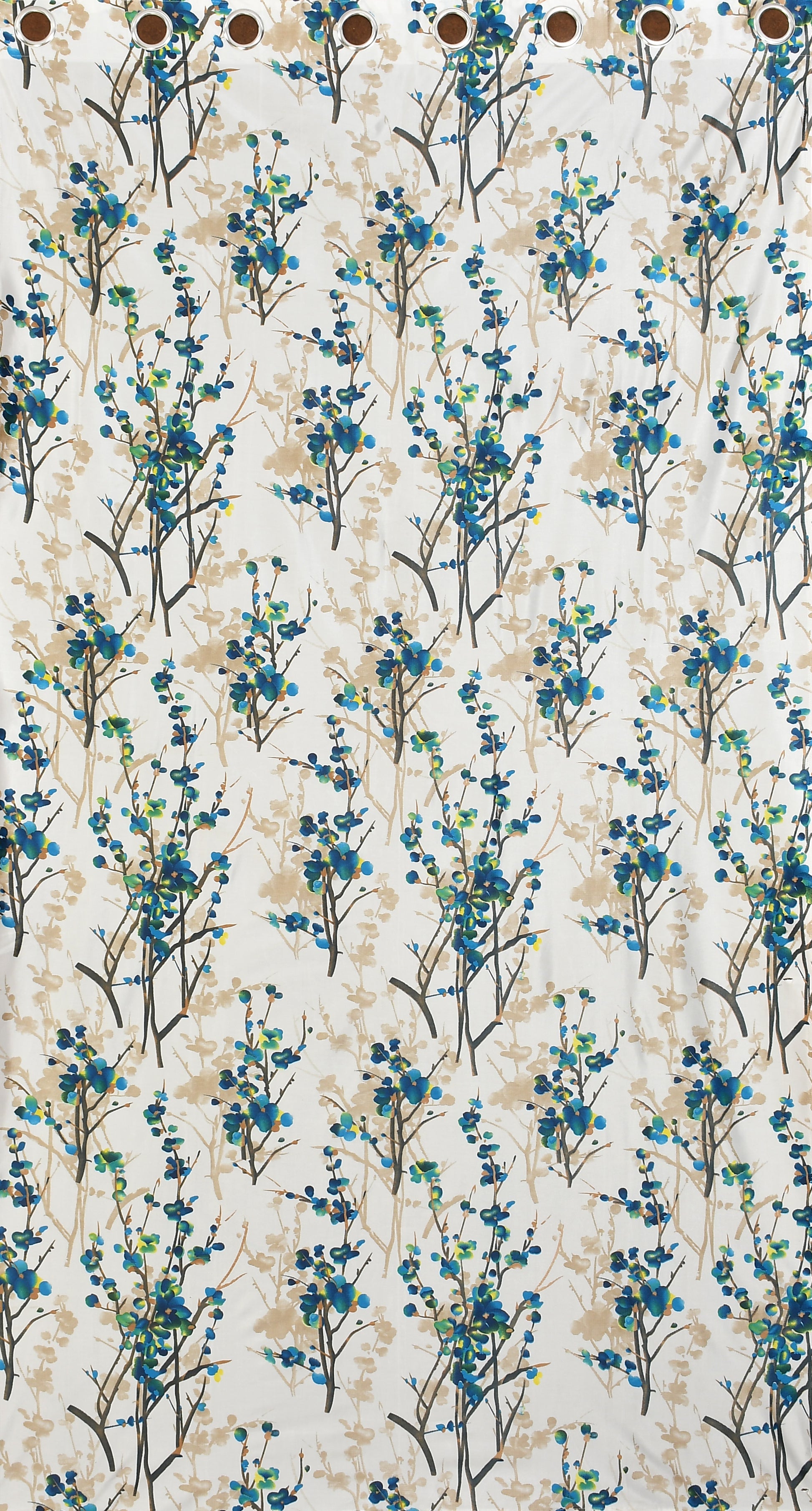 Brighten up your space with these elegant white curtains, featuring a modern branch and floral design in blue, green, and beige tones.