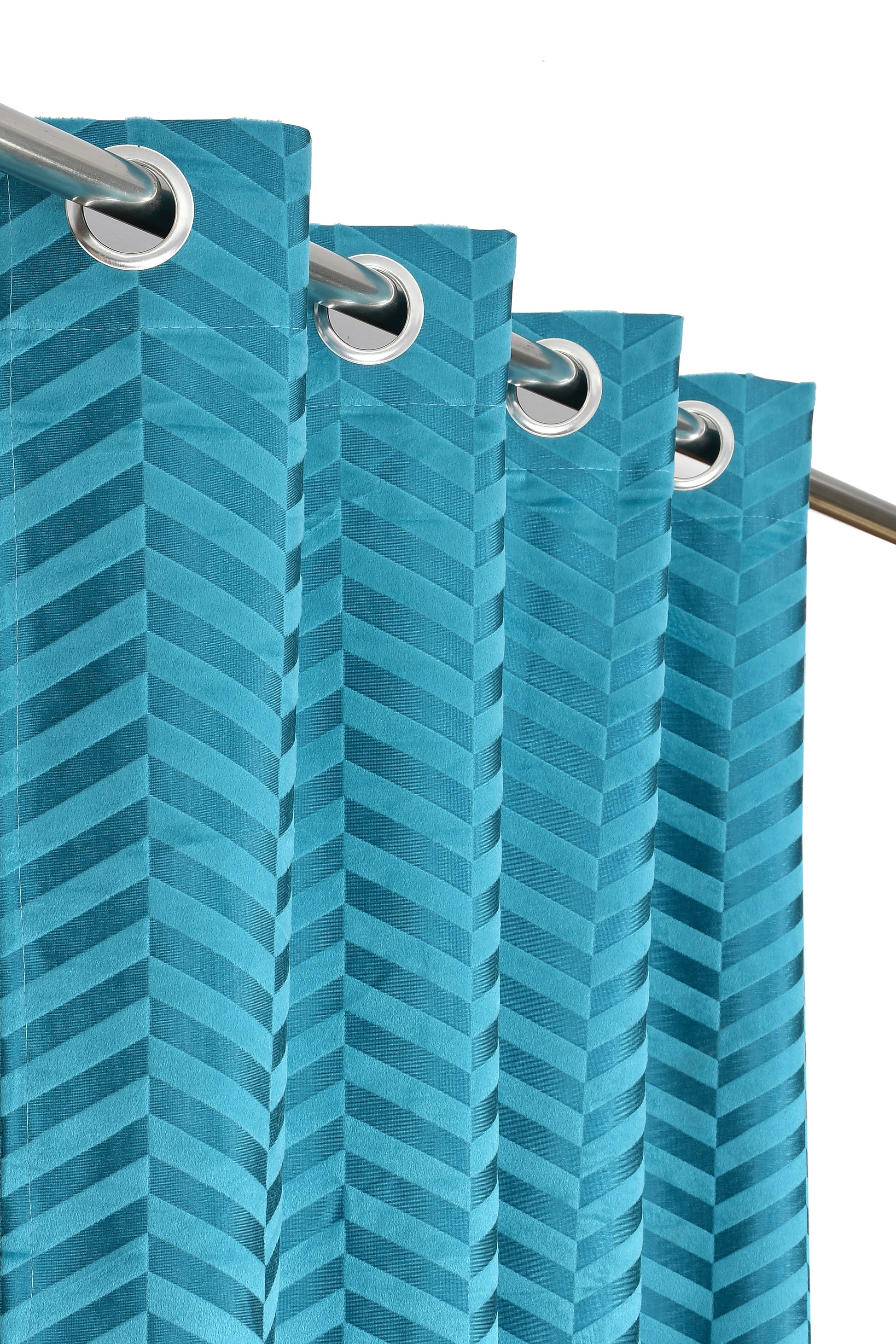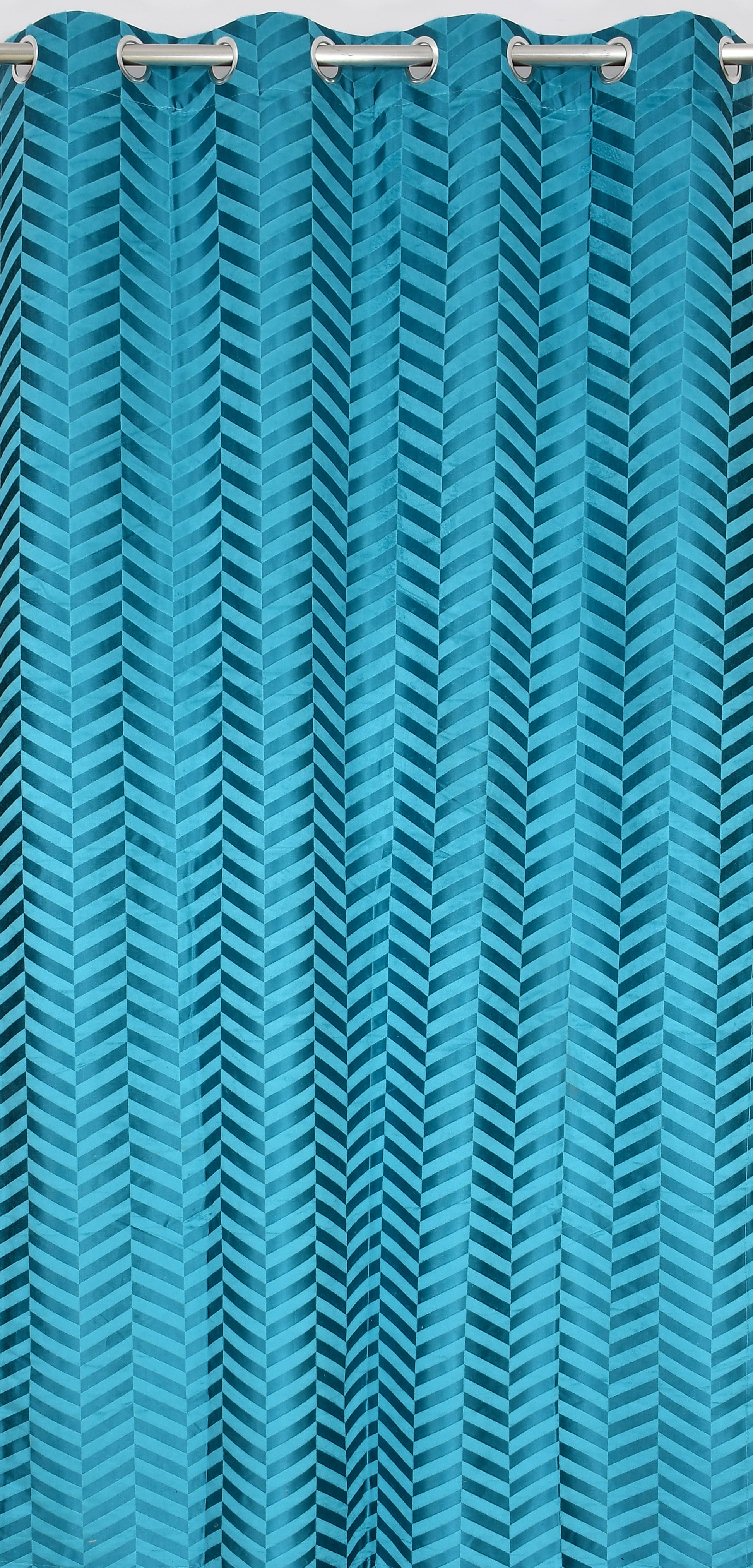 Bring a bold and modern statement to your interiors with these stylish curtains, featuring a chic chevron pattern on a vibrant aqua background. Made from premium quality fabric that drapes beautifully, these curtains are equipped with sturdy metal eyelets for easy hanging and smooth operation. Available in nine elegant colors: aqua, pink, brown, gold, green, cream, grey, maroon, and navy blue.